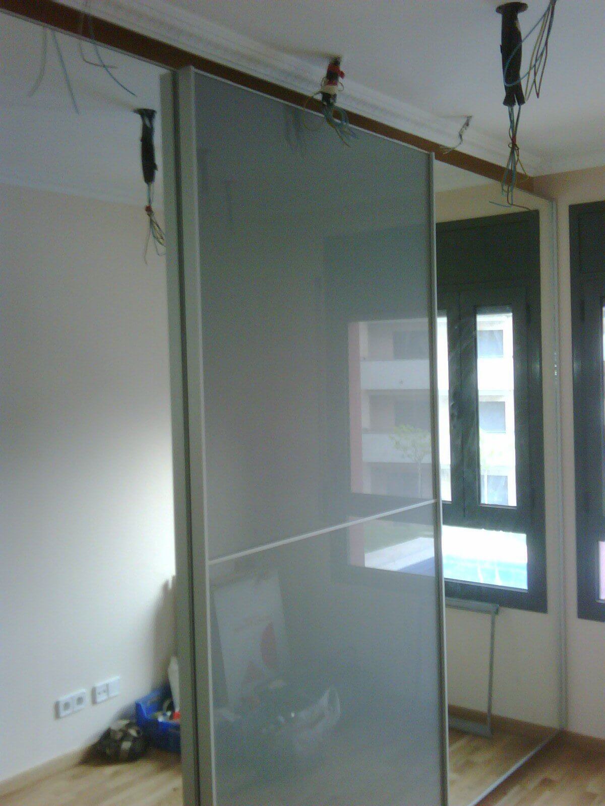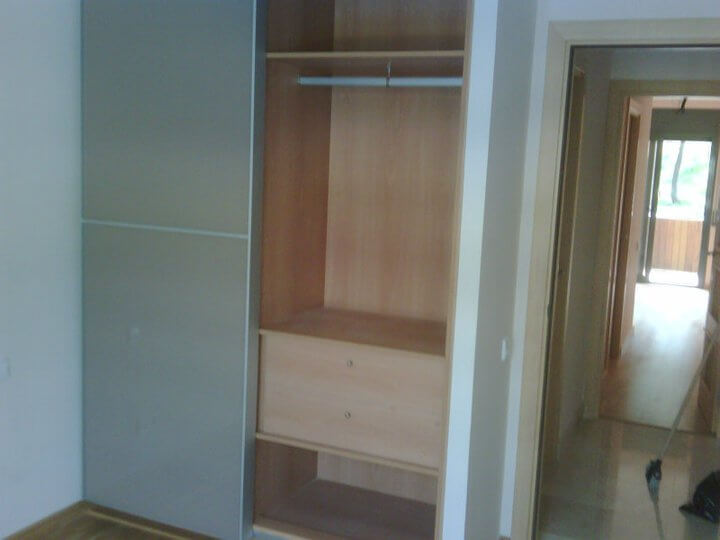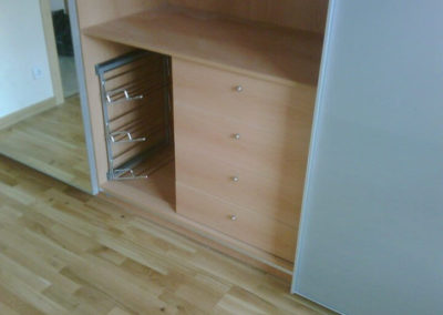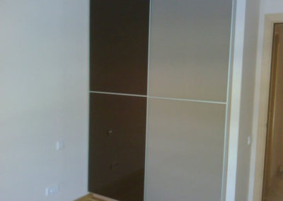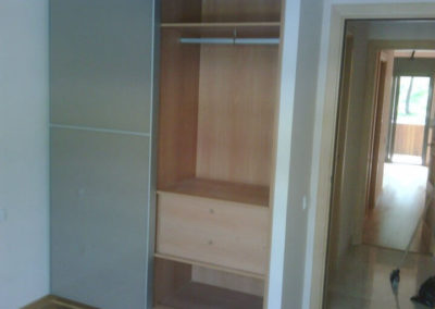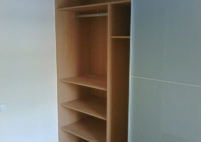 Proyecto de carpintería consistente en armarios roperos con puertas correderas con cubierta de cristal. La realización de los interiores es un trabajo laborioso que Fet a mida ha realizado con profesionalidad.