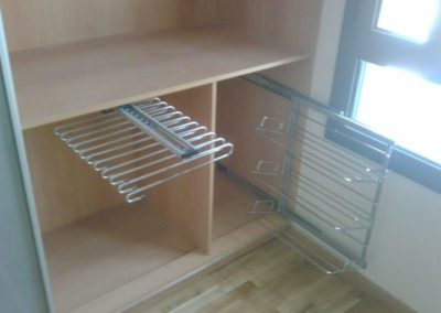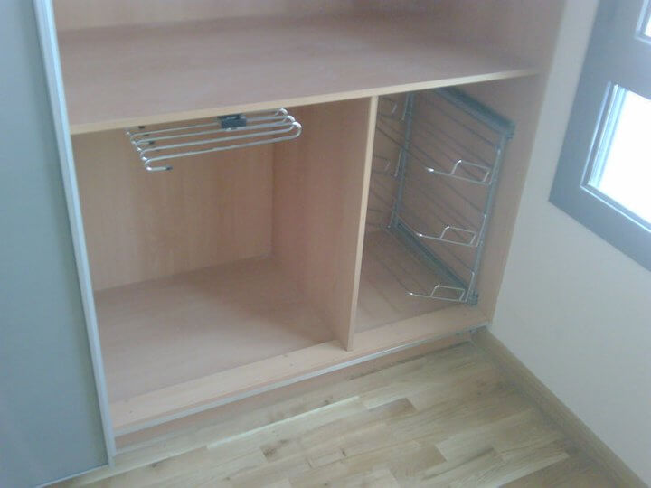 De este proyecto se destaca la funcionalidad del interior con accesorios de calidad adecuados para guardar cada pieza de ropa concreta que se requiere: corbateros, pantaloneros, zapateros, etc.