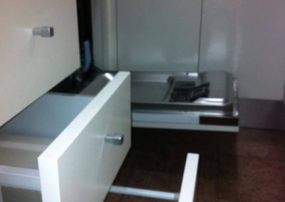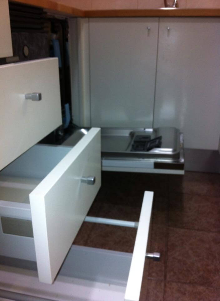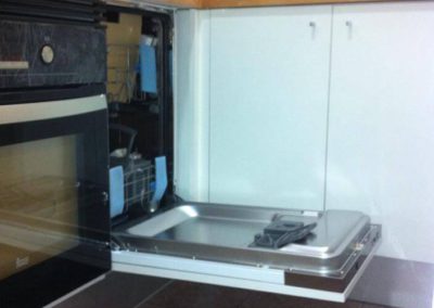En Fet a mida nos preocupa tanto la estética como unos interiores bien acabados y funcionales. Podemos destacar la integración en la cocina del lavavajillas con tapa de madera blanca lacada.